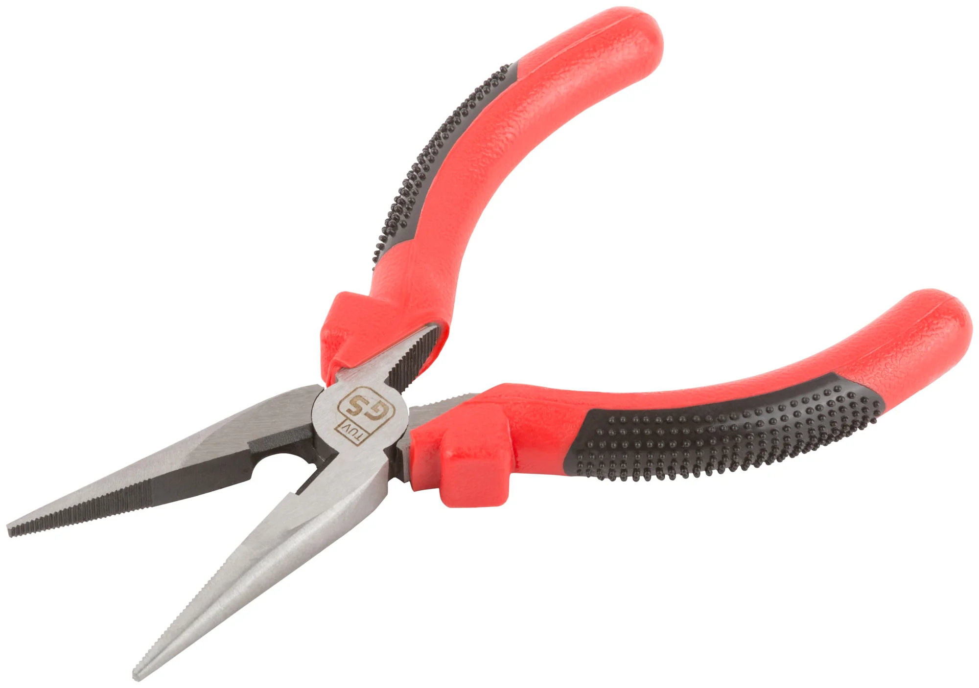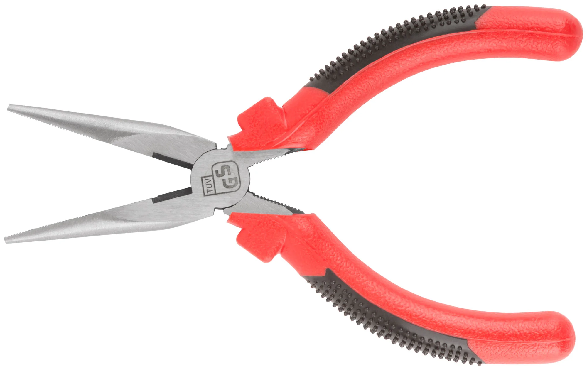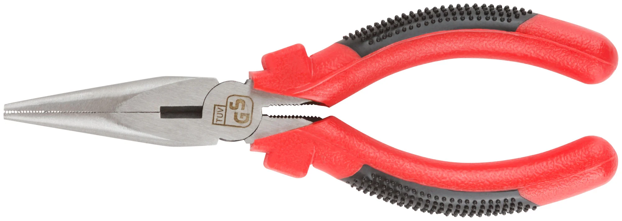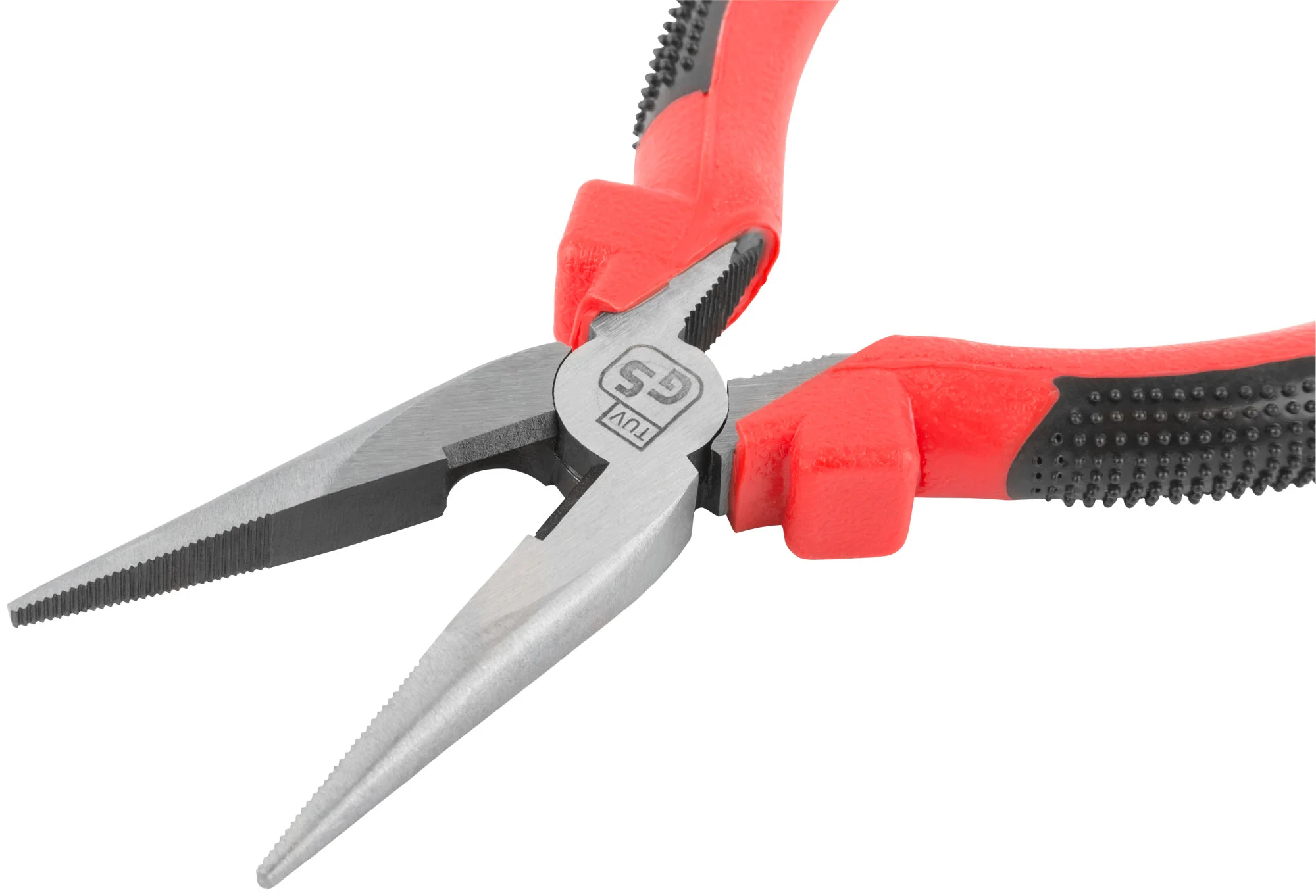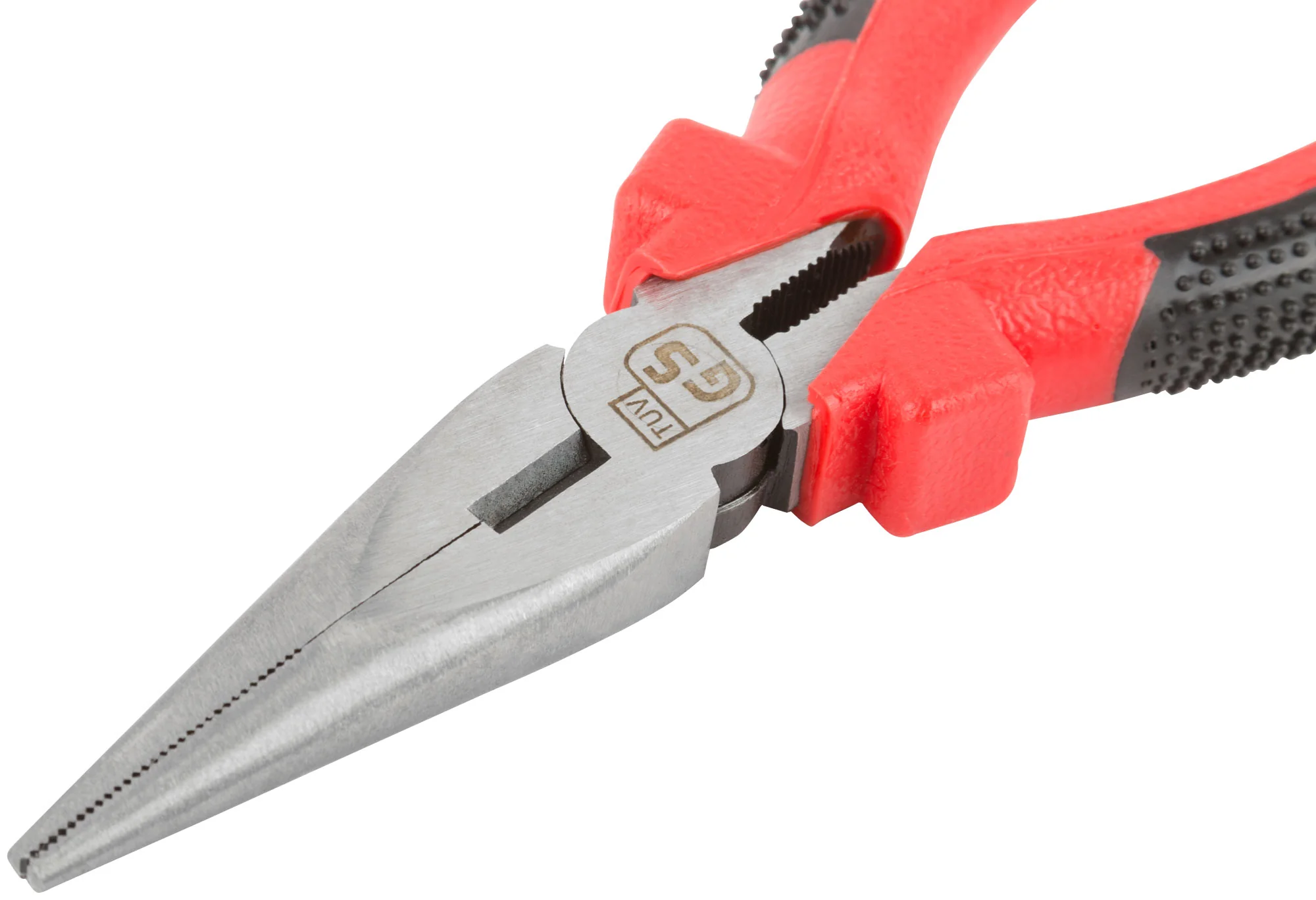 Инструмент изготовлен из полированной инструментальной стали, что обеспечивает высокую прочность и устойчивость к коррозии. Красно-черные пластиковые ручки снабжены антискользящими вставками для комфортной и безопасной работы.