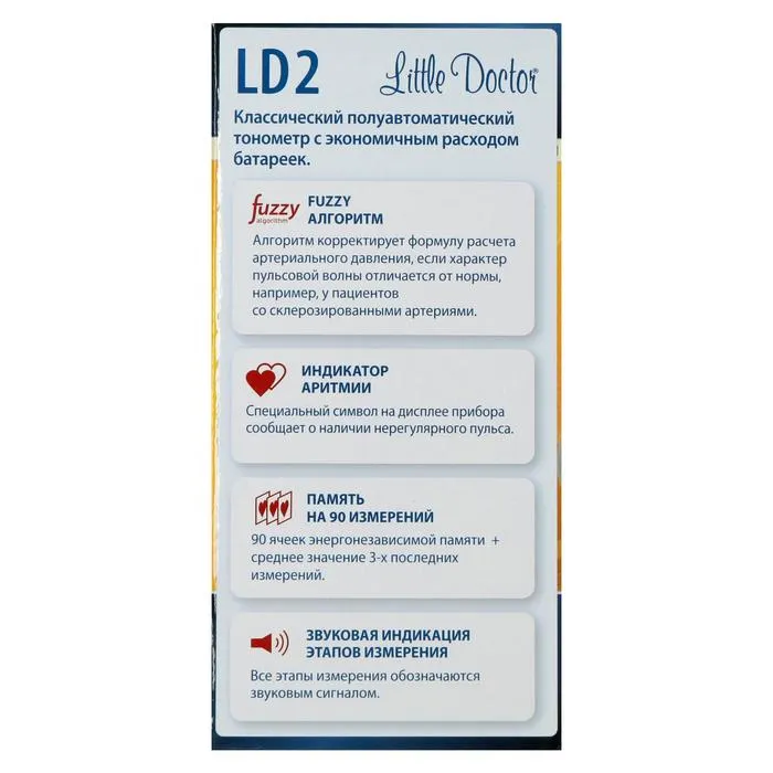 Компактная и экономичная модель полуавтоматического тонометра Little Doctor имеет следующие особенности: