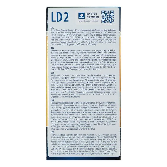 Тонометр Little Doctor LD-2, полуавтоматический, манжета 25-36 см, 4хАА — Характеристики
