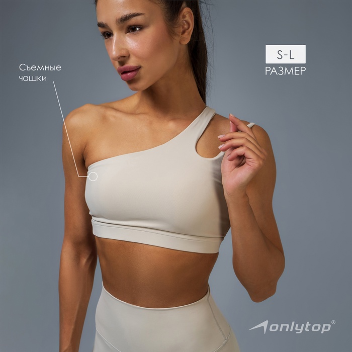 Топ спортивный ONLYTOP Asymmetry, размер L, бежевый