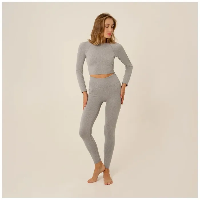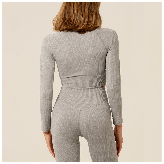 Топ спортивный с длинным рукавом, размер М, серый