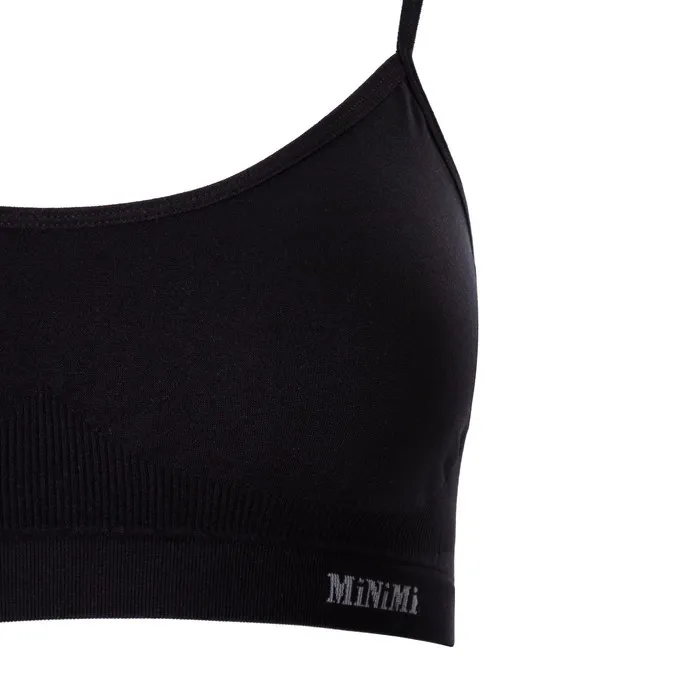 Женский топ MiNiMi  на тонких бретелях. Выполнен из микрофибры, которая обладает гладкой текстурой, приятно ощущается на теле, превосходно пропускает воздух, впитывает влагу, хорошо сохраняет форму и цвет. Бесшовная технология производства Seamless обеспечивает комфортное облегание благодаря отсутствию вертикальных швов и вывязанным переходам в области груди.