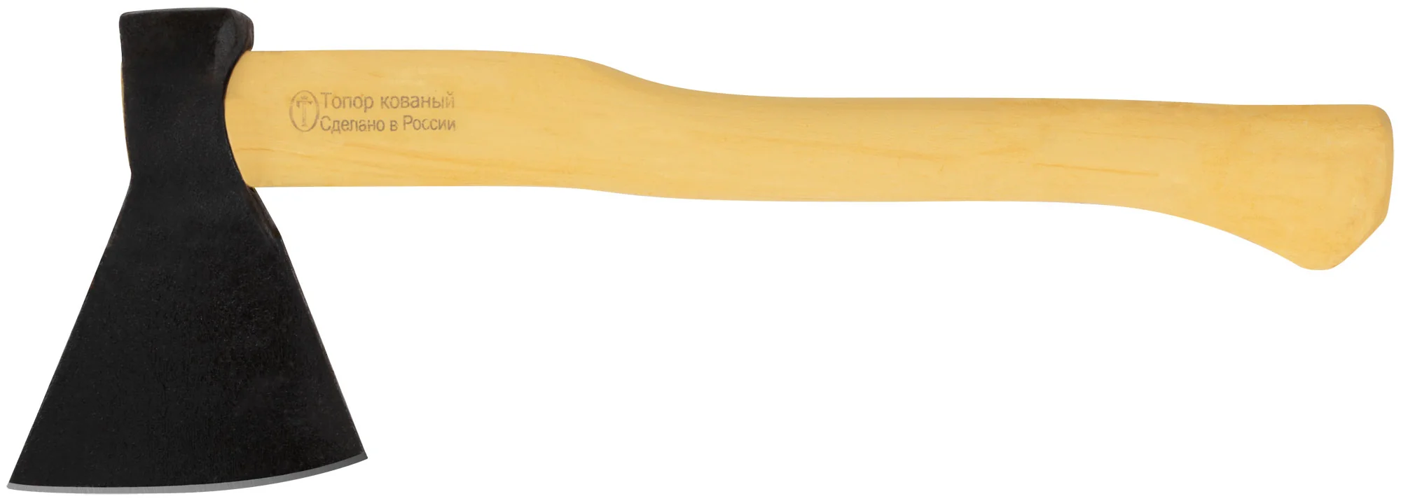 Изготовленный из прочной стали 60Г, топор имеет кованую конструкцию, что обеспечивает ему долговечность и высокую устойчивость к повреждениям. Деревянная ручка удобно лежит в руке, позволяя долго работать без усталости.
