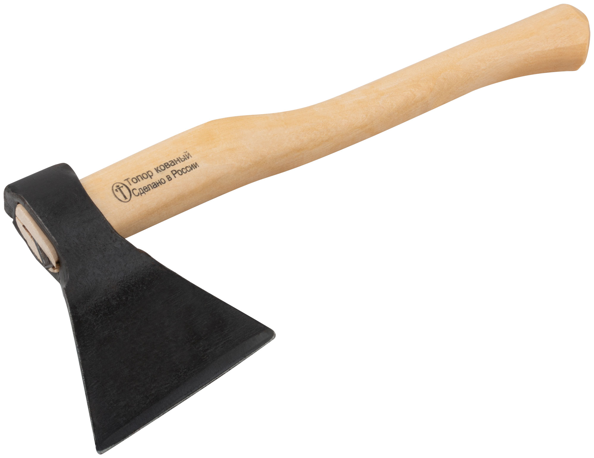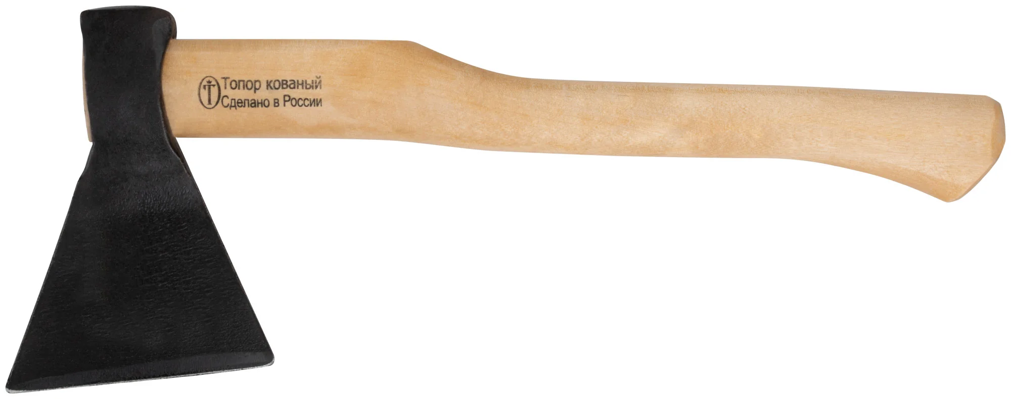 Топор изготовлен из качественной стали 60Г, что обеспечивает высокую прочность и долговечность. Деревянная ручка удобно ложится в руку, снижая усталость при длительном использовании. Общий вес топора составляет 1000 грамм, что оптимально для комфортной работы.