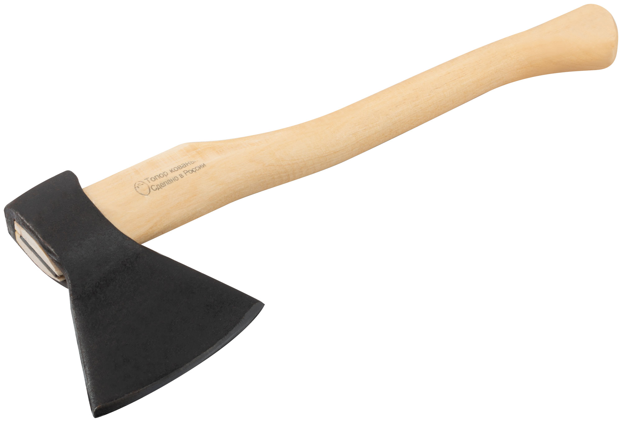 Топор изготовлен с использованием высококачественной стали 60Г, что обеспечивает долговечность и остроту лезвия. Деревянная ручка способствует комфортному захвату и снижает вибрацию при ударе. Общая длина инструмента составляет 530 мм, что оптимально для точного и мощного удара.