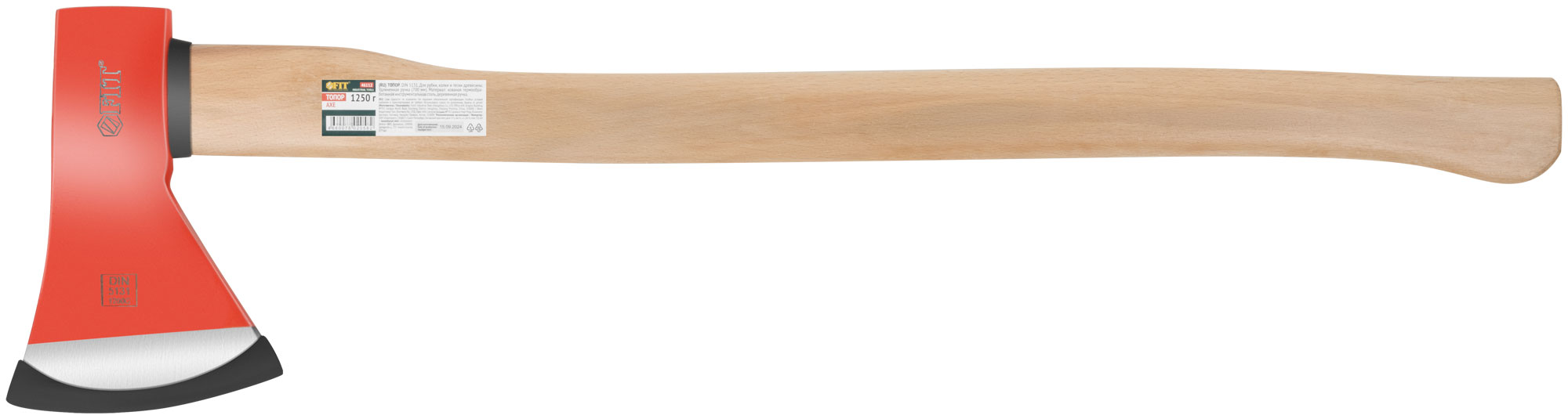 Топор изготовлен из прочной кованой стали, что обеспечивает его долговечность и надежность. Длинная деревянная ручка обеспечивает комфортный хват и минимизирует усталость при работе.