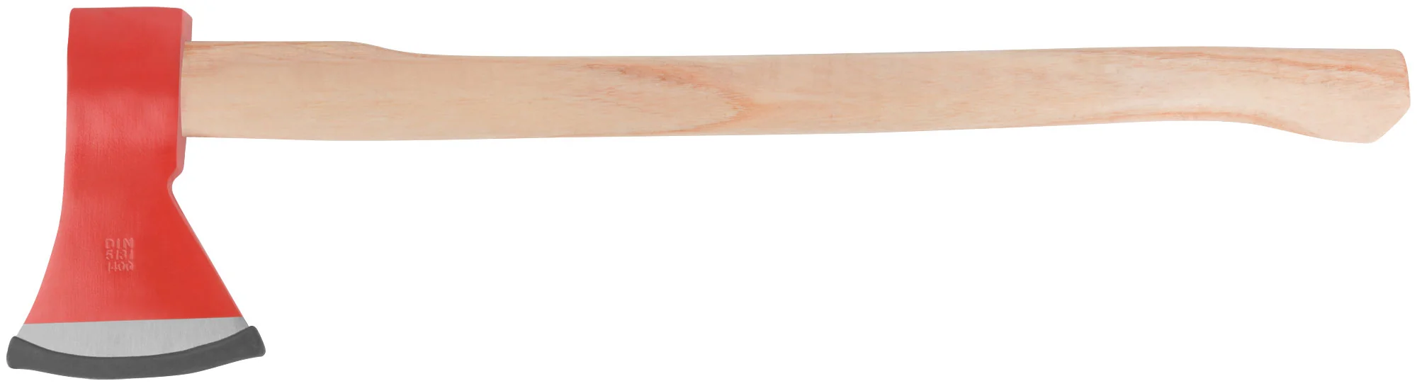 Топор изготовлен из кованой инструментальной стали, что обеспечивает высокую прочность и долговечность. Длинная деревянная ручка позволяет наносить более мощные и точные удары, а также снижает вибрации при работе.