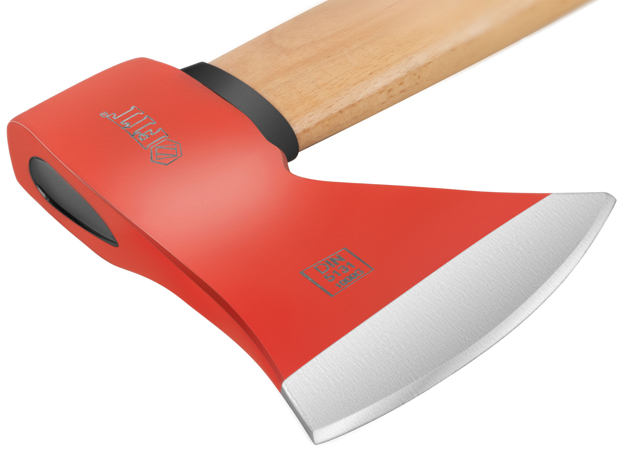 Преимущества топора включают его оптимальный вес в 1000 гр, что позволяет легко управляться с ним при различных операциях. Конструкция соответствует стандарту DIN 5131, что гарантирует надежность и качество.