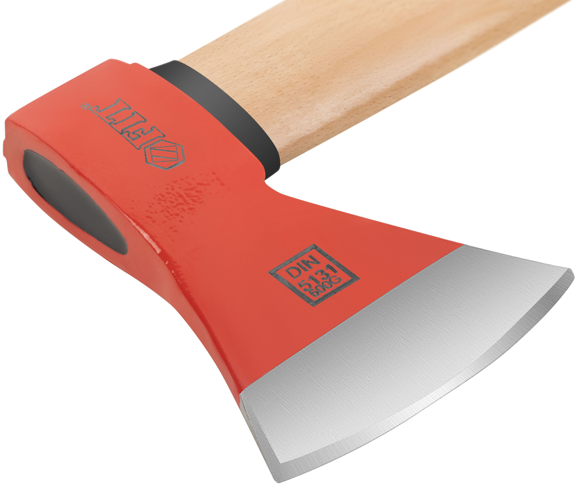 Топор изготовлен из кованой инструментальной стали, что обеспечивает ему высокую прочность и долговечность. Деревянная ручка обеспечивает комфортный и надежный хват, что особенно важно при длительной работе.