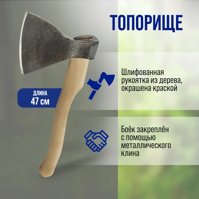 Топор кованый ТУНДРА, мясорубный, длина лезвия 190 мм, деревянное топорище 470 мм, 1700 г — Характеристики