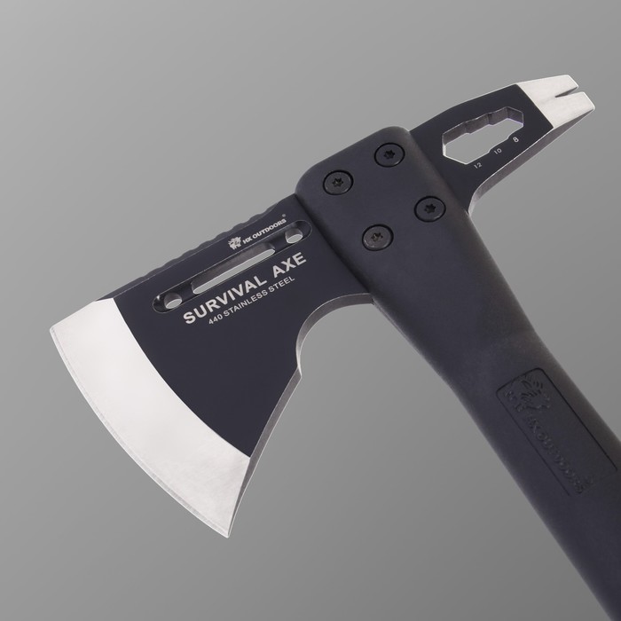 Топор оснащен гвоздодером и гаечными ключами в трех размерах.