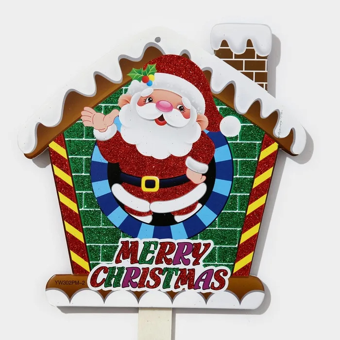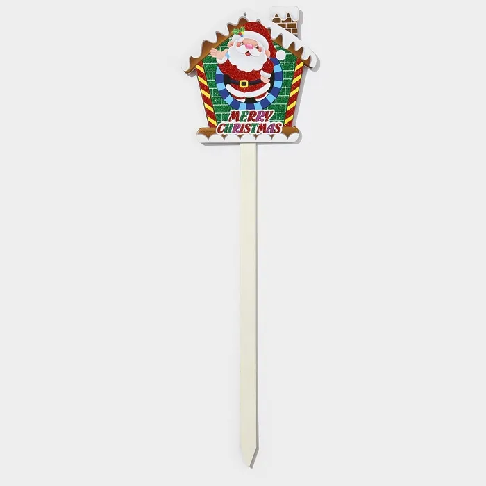 Новогодний топпер декоративный трость «Дедушка мороз на санках», 16,7х67,5 см