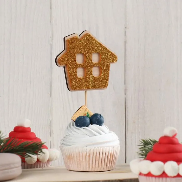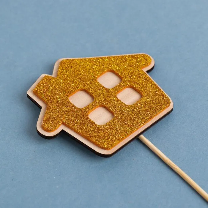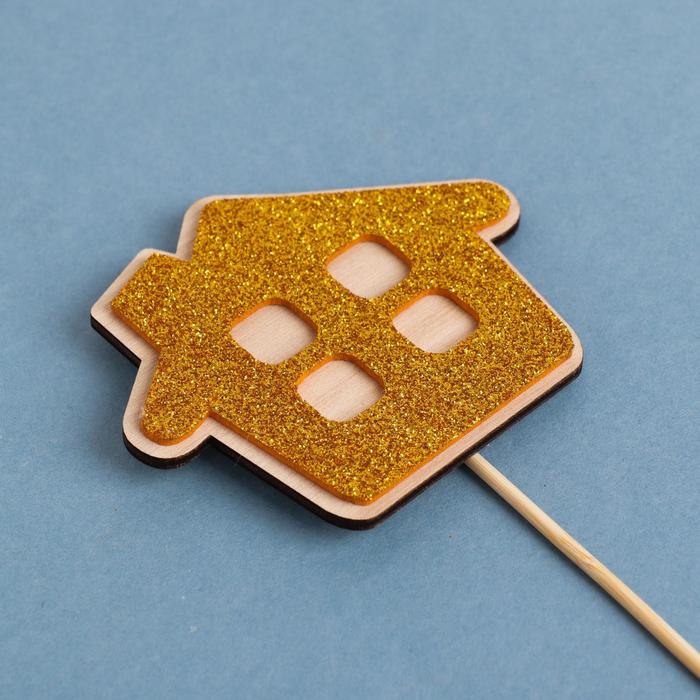 Топпер деревянный блестящий "Домик" золото 8,5х7,2 см — Характеристики