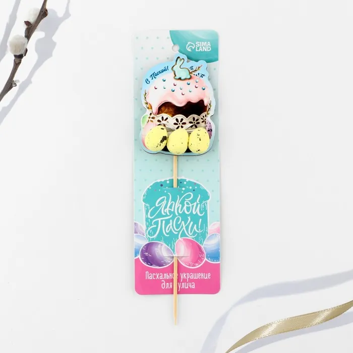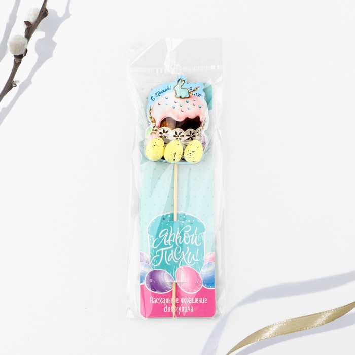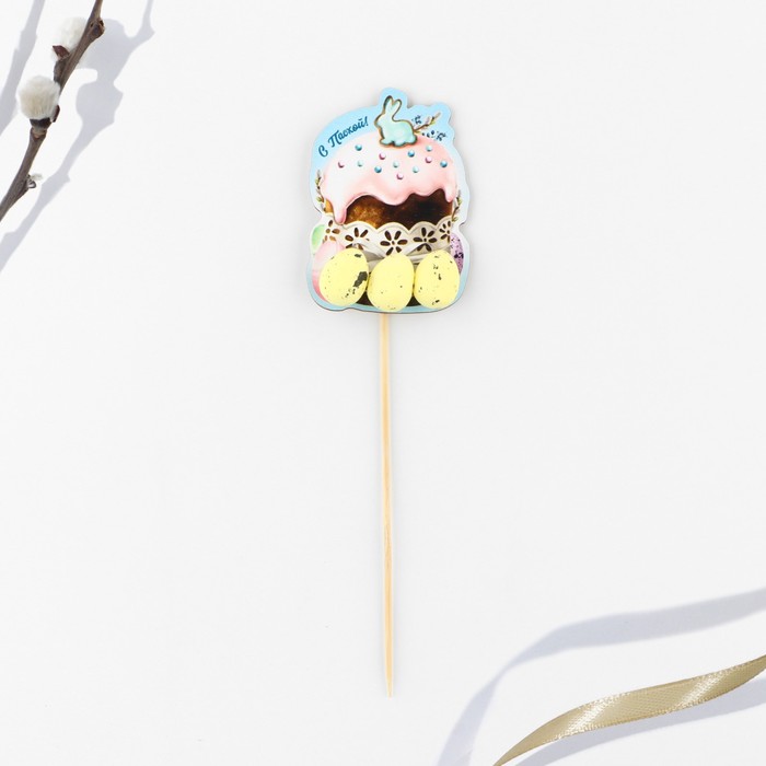 Топпер деревянный для украшения кулича «С Пасхой!», 7,1 х 5,2 см