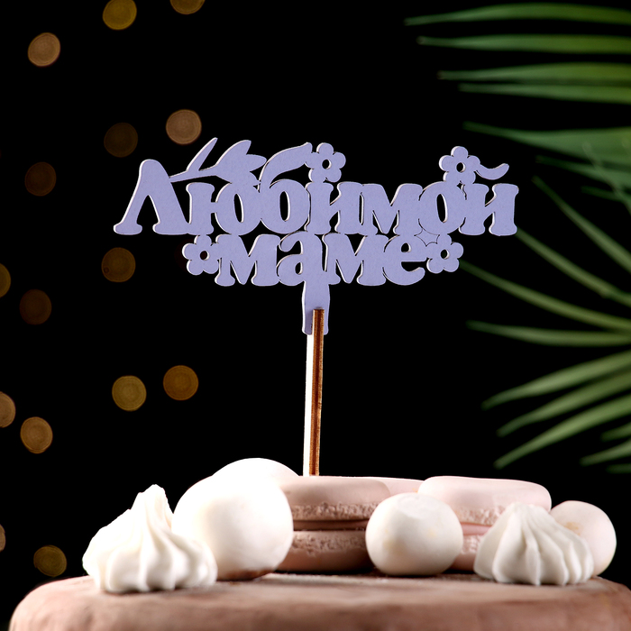 Топпер деревянный «Любимой маме», лавандовый, 14×7 см