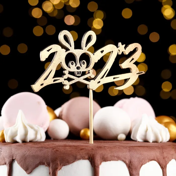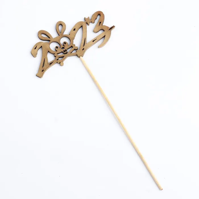 Топпер деревянный "Символ года 2023", золотой, "Кролик в цифре" — Характеристики
