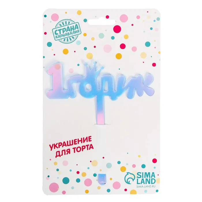 Топпер для торта «1 годик», акрил, 12 см, голография — Характеристики