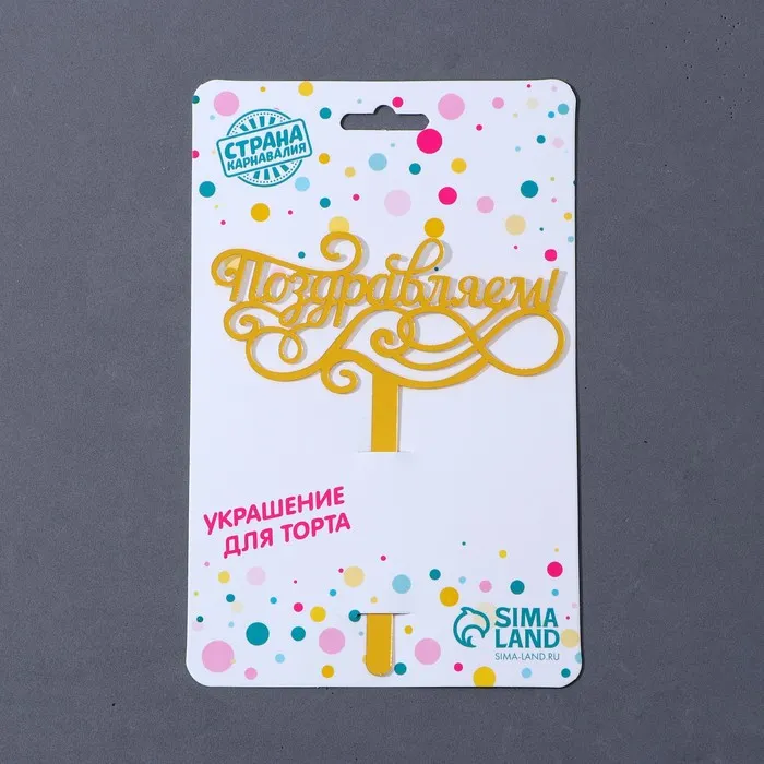 Топпер для торта акрил «Поздравляем», 13 см — Характеристики