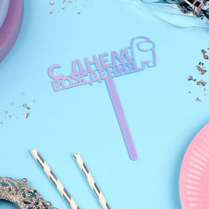Топпер для торта «С Днём Рождения», голография, 12 см