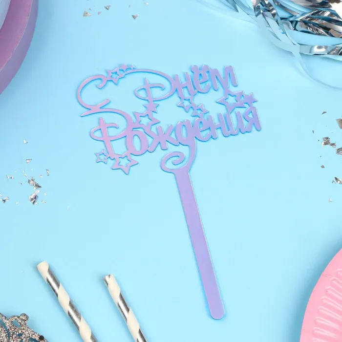Топпер для торта акрил «С Днём Рождения», голография, 15 см — Характеристики