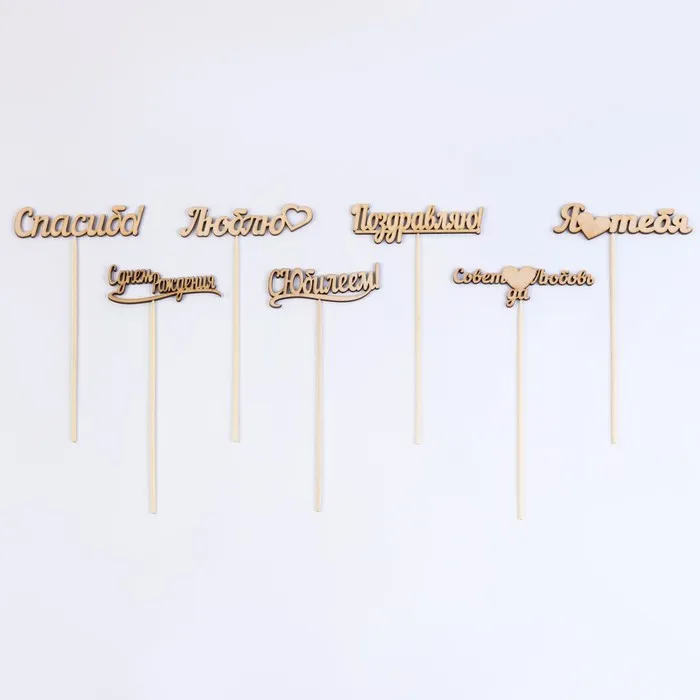 Подготовка к праздникам — это весьма непростое занятие, которое требует много времени. Подчеркнуть особую атмосферу торжества помогут наши топперы. Просто вставьте их в сладкое угощение или букет цветов, и они добавят яркости вашему мероприятию и сделают его запоминающимся. Топперы — это маленькие декоративные таблички из дерева. Используйте украшение для оформления букета. Так вы подчеркнёте красоту цветов и подарите массу положительных эмоций дорогому вам человеку.