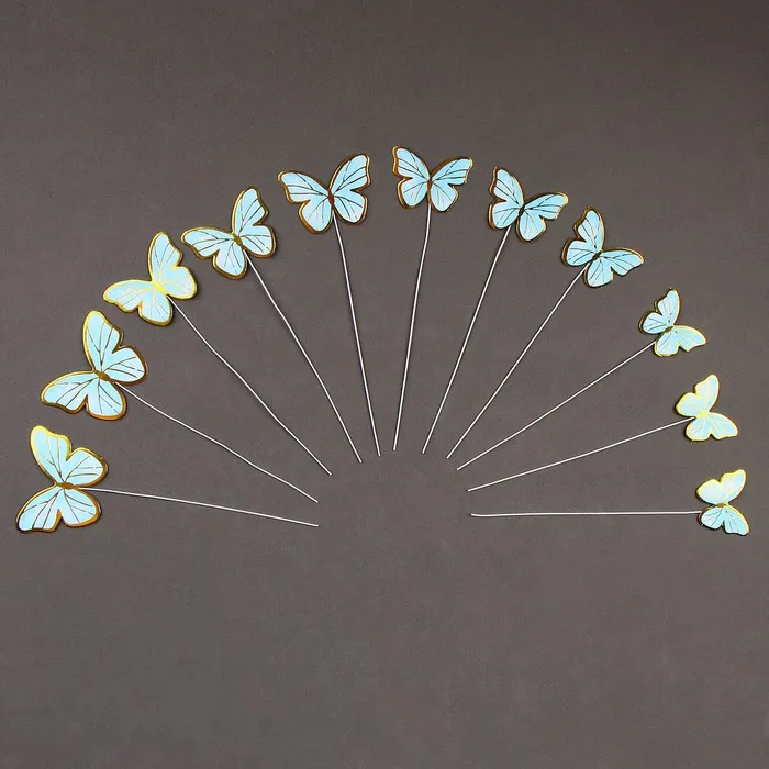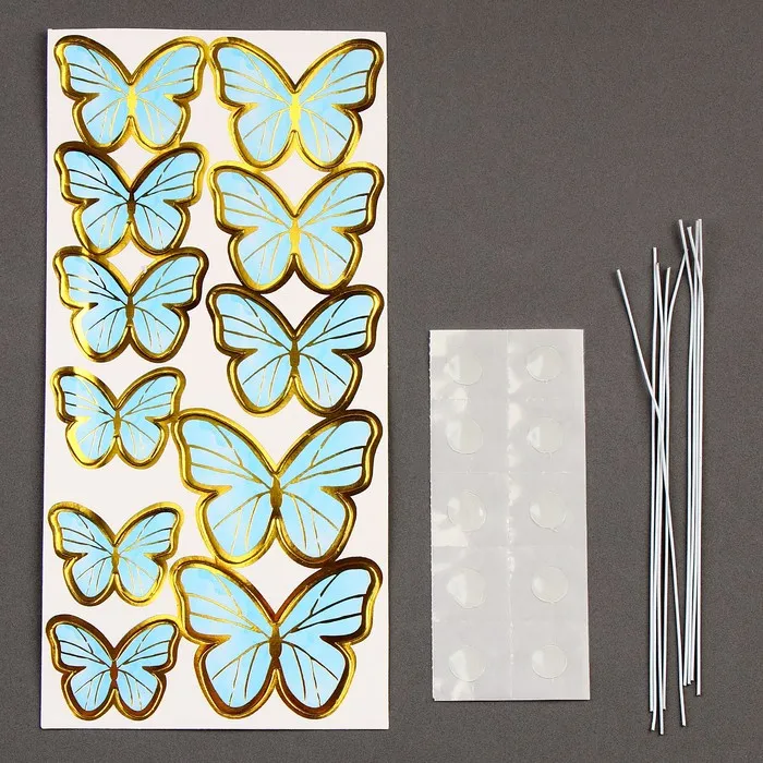 В набор входит 11 бабочек разного размера, 11 проволочек и 11 клеевых точек.