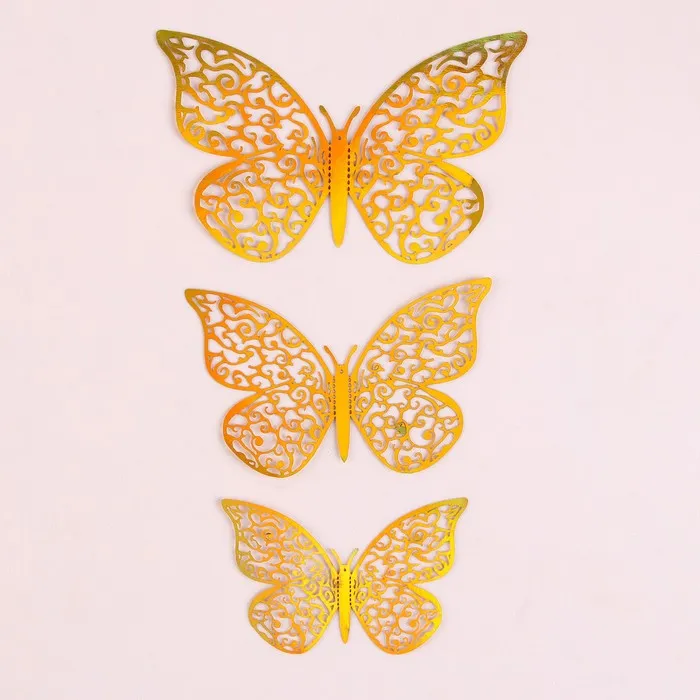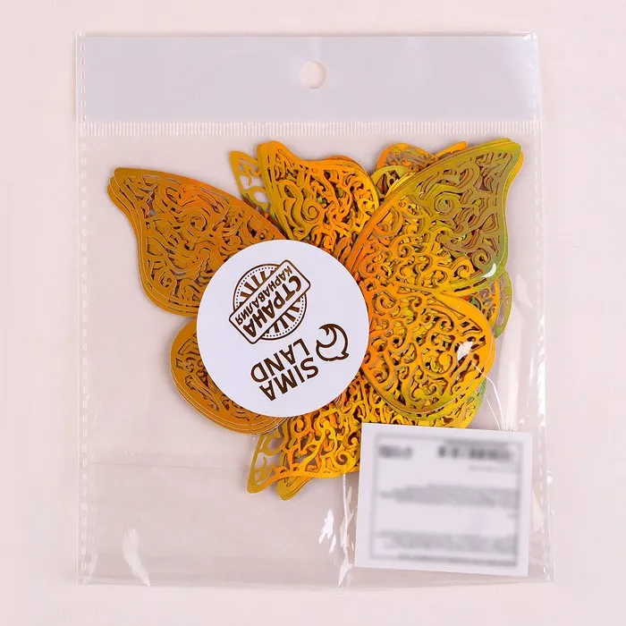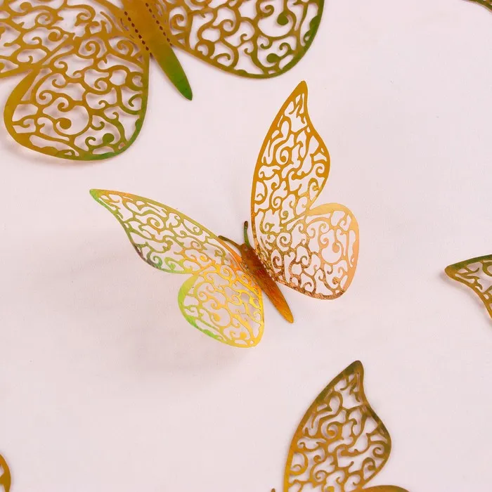 Топпер для торта «Бабочки», 12 штук, голография, золотой — Характеристики