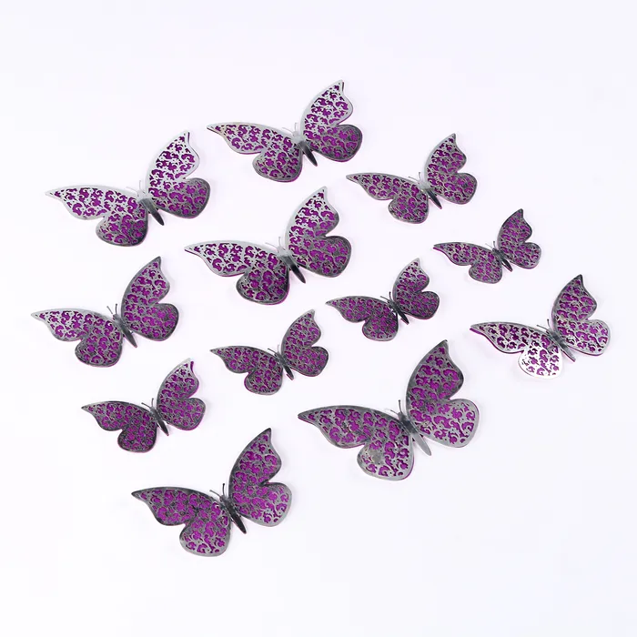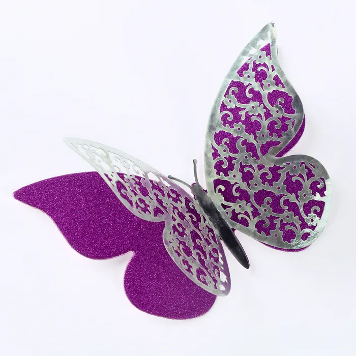 В этот набор входят 12 фиолетовых бабочек, которые станут отличным выбором для декоративного оформления интерьеров и создания праздничной атмосферы. Бабочки лёгкие и прочные, поэтому их можно использовать для украшения стен, мебели и оформления мероприятий.