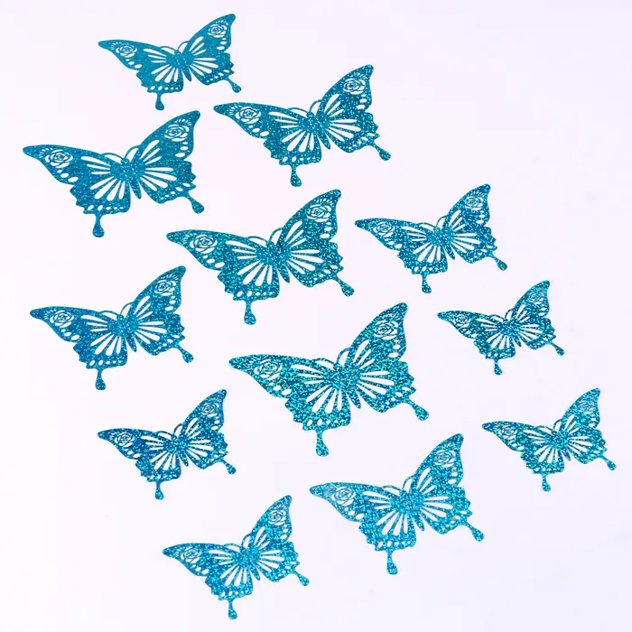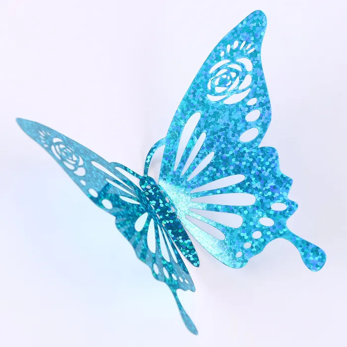 В этот набор входят 12 голубых голографических бабочек, которые станут отличным выбором для декоративного оформления интерьеров и создания праздничной атмосферы. Бабочки лёгкие и прочные, поэтому их можно использовать для украшения стен, мебели и оформления мероприятий.