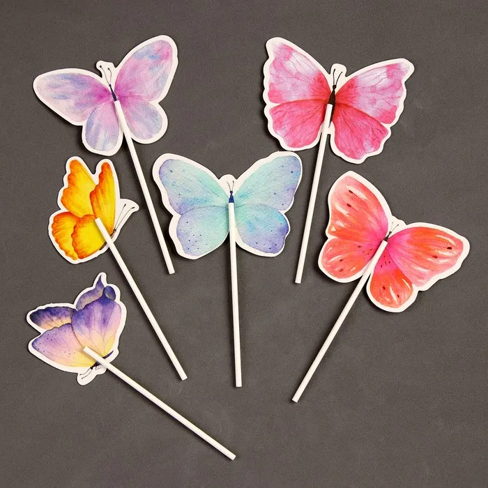 Сделайте ваш праздник незабываемым с набором топперов «Бабочки», которые придадут мероприятию атмосферу лёгкости и красоты.