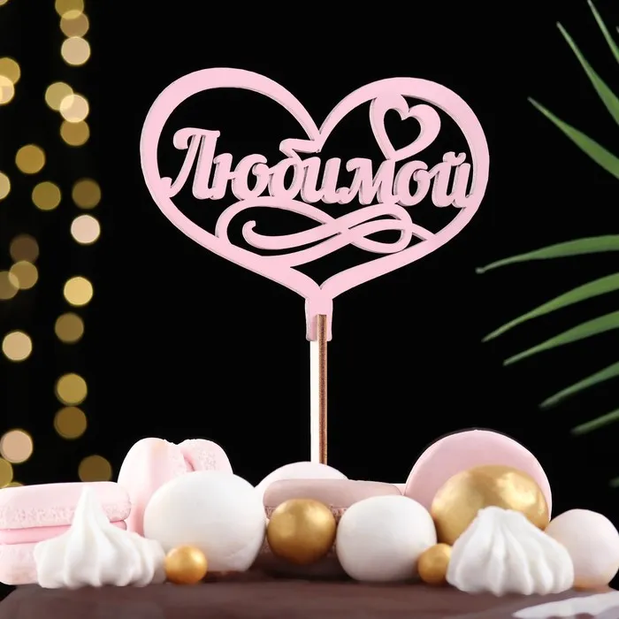 Топпер для торта деревянный «Любимой», розовый, 13×10 см — Характеристики