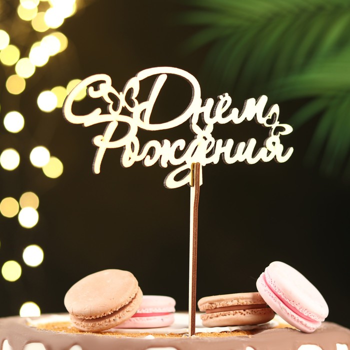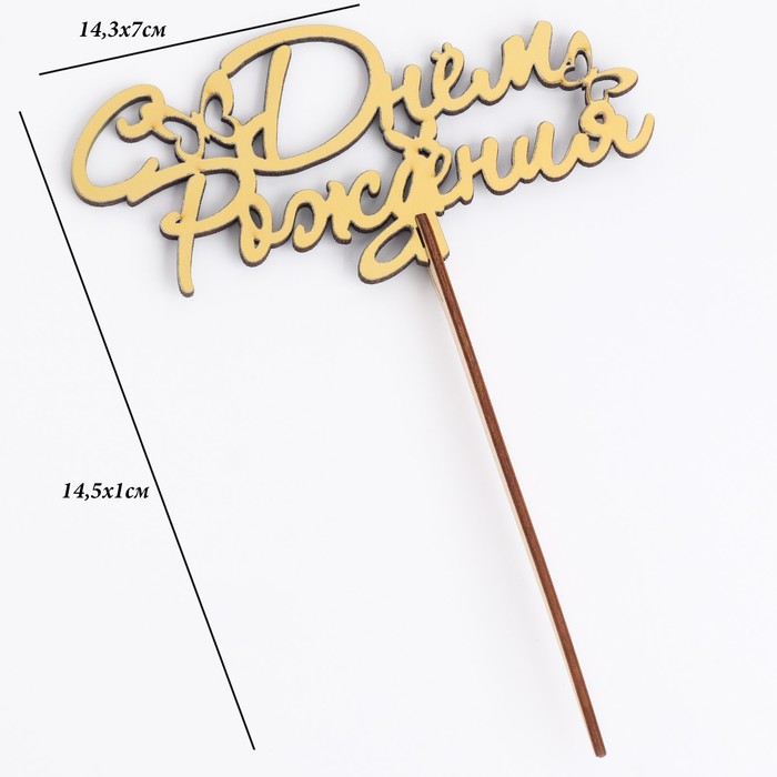 Топпер для торта деревянный «С Днём Рождения», 14.3×7 см — Характеристики