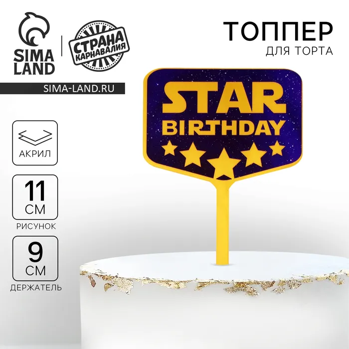 Топпер для торта деревянный «С Днём Рождения», подарок — Характеристики