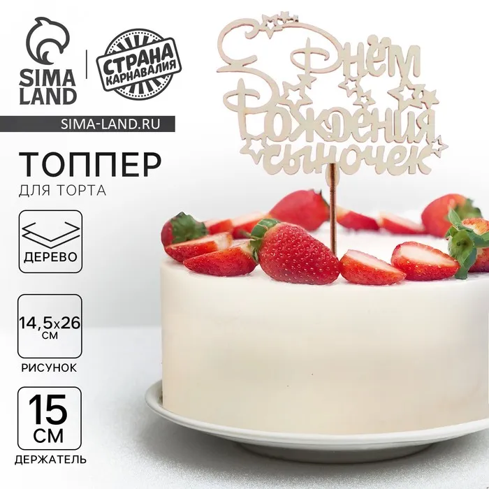 Топпер для торта деревянный «С Днём рождения, сыночек» — Характеристики