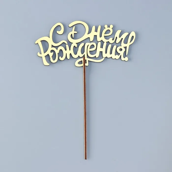 Топпер для торта деревянный «С Днём Рождения», золотой, 14.3×6.6 см