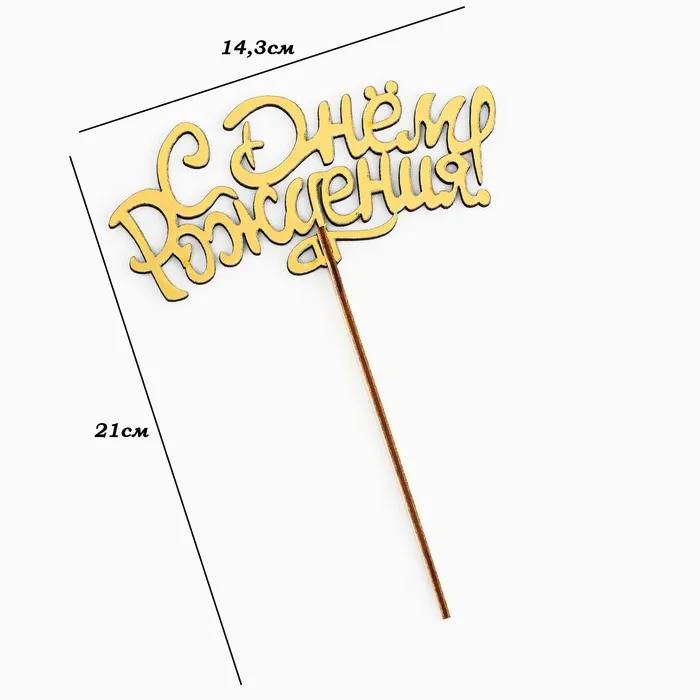 Топпер для торта деревянный «С Днём Рождения», золотой, 14.3×6.6 см — Характеристики