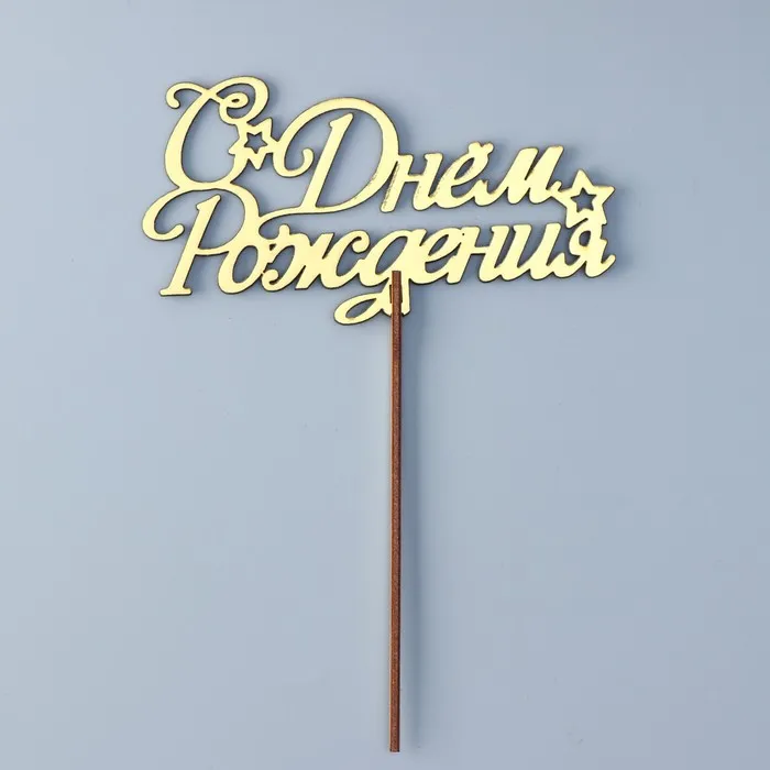 Топпер для торта деревянный «С Днём Рождения», золотой, 14.3×7.7 см