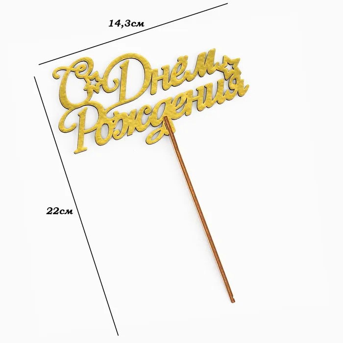 Топпер для торта деревянный «С Днём Рождения», золотой, 14.3×7.7 см — Характеристики