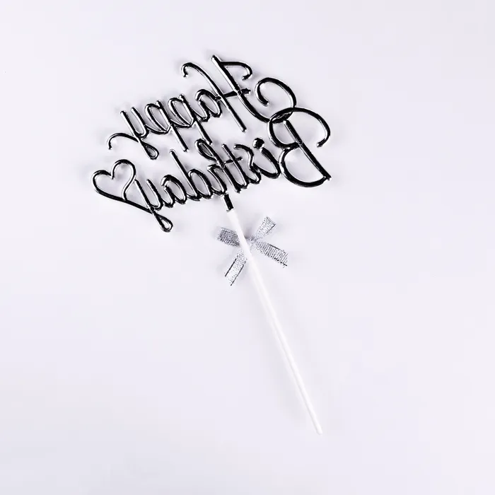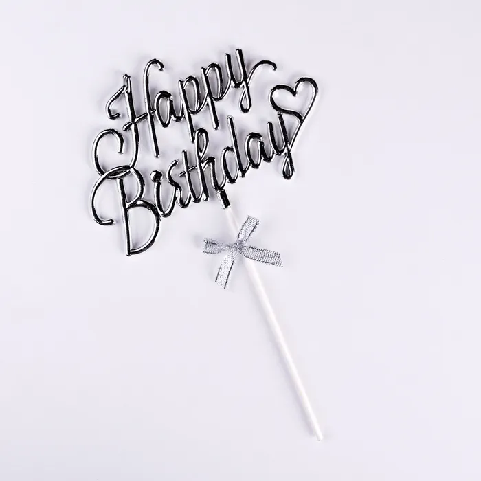 Топпер для торта Happy Birthday, серебряный — Характеристики