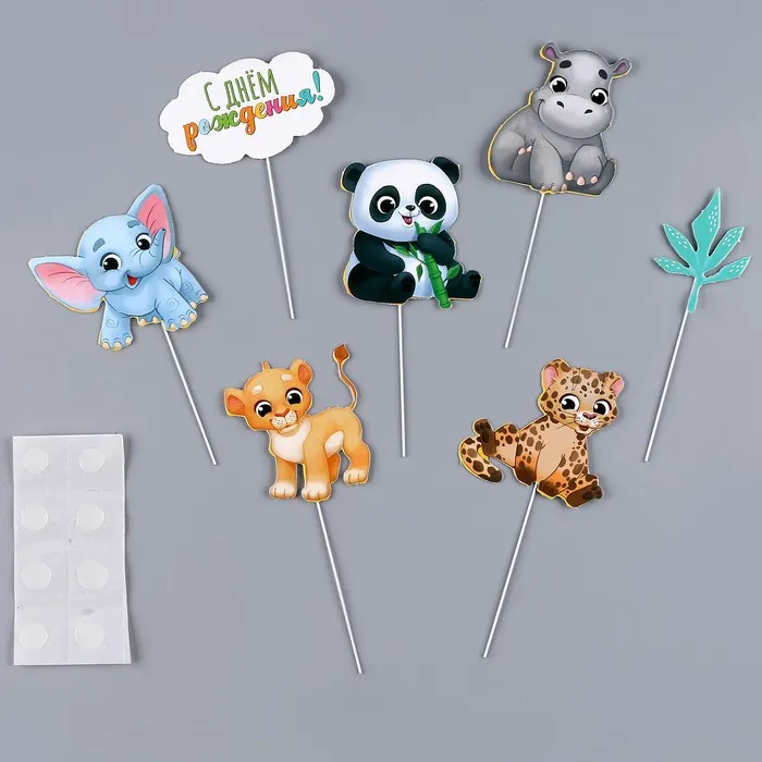Топпер для торта картон на подложке с проволокой «Зверюшки» — Характеристики