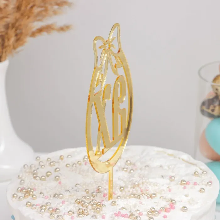 Этот золотой топпер — идеальный выбор для тех, кто ценит стильные и простые в использовании украшения для праздника. Добавьте праздничного блеска вашему торту с этим великолепным аксессуаром!