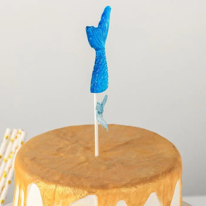 Топпер для торта «Хвост русалки», 18,5×5 см, цвет голубой — Характеристики
