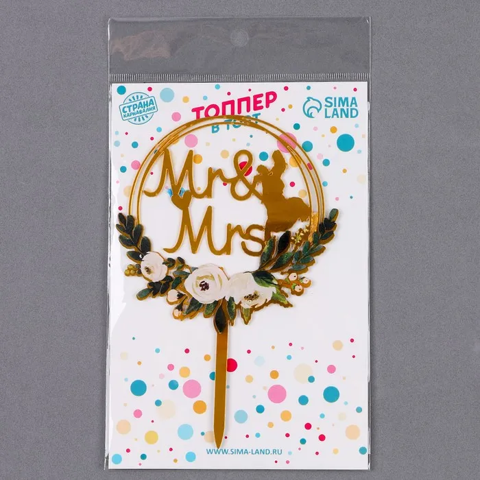 Топпер Mr & Mrs — это стильное и элегантное украшение для тортов на свадебные и романтические мероприятия. Изготовленный из пластика топпер легко устанавливается в десерт, придавая ему утончённый вид. Этот топпер станет отличным украшением для вашего праздничного торта.