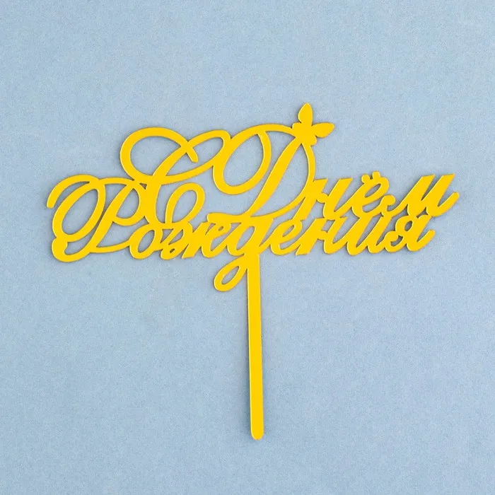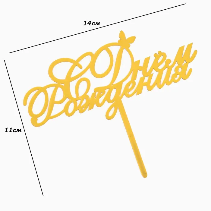 Топпер для торта «С днем рождения», золотой — Характеристики