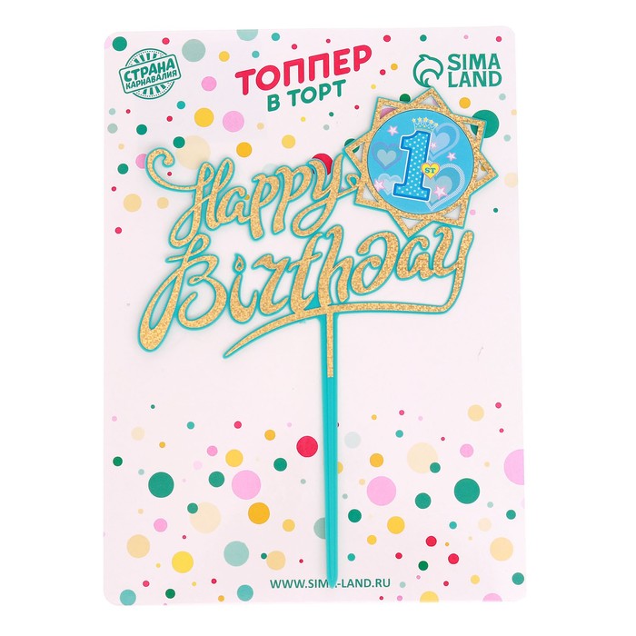 Топпер для торта «С днём рождения», 1 год, синий — Характеристики