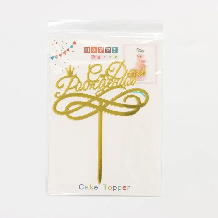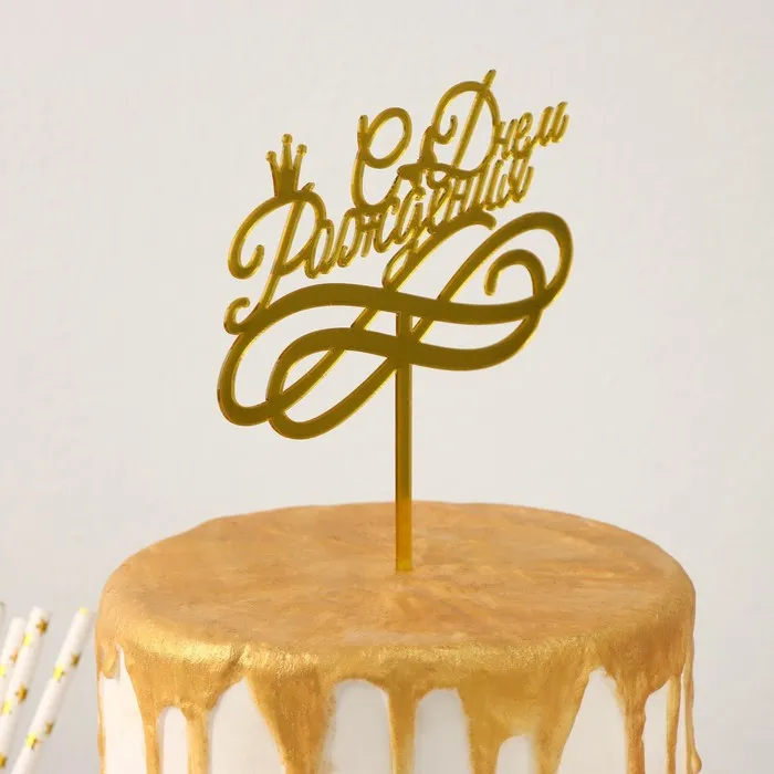 Топпер для торта «С Днём Рождения», 13.5×17 см, золотистый — Характеристики