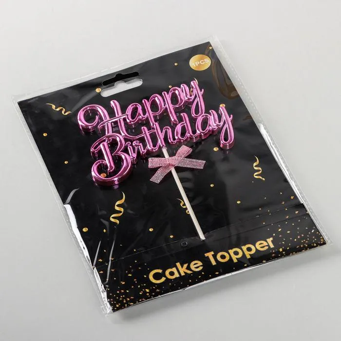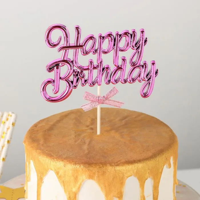 Топпер для торта «С днём рождения», 17×11 см, цвет розовый — Характеристики