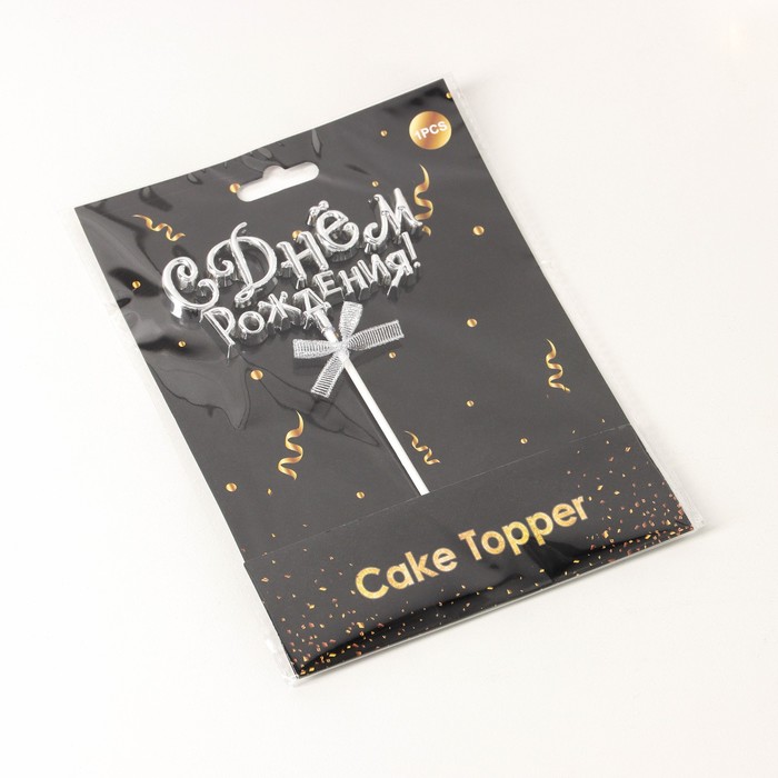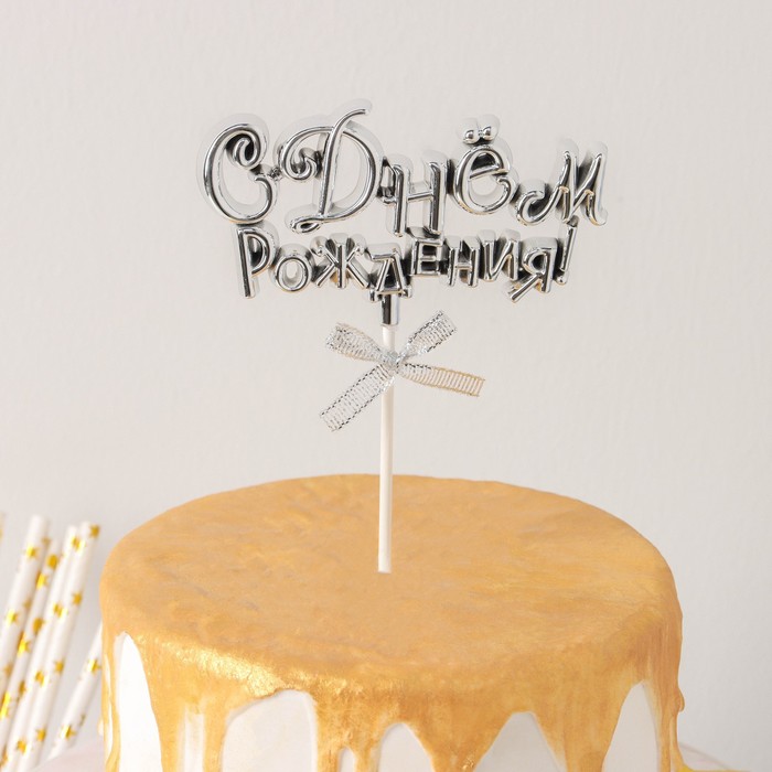 Топпер для торта «С Днём Рождения!», 18×10.5 см, серебристый — Характеристики