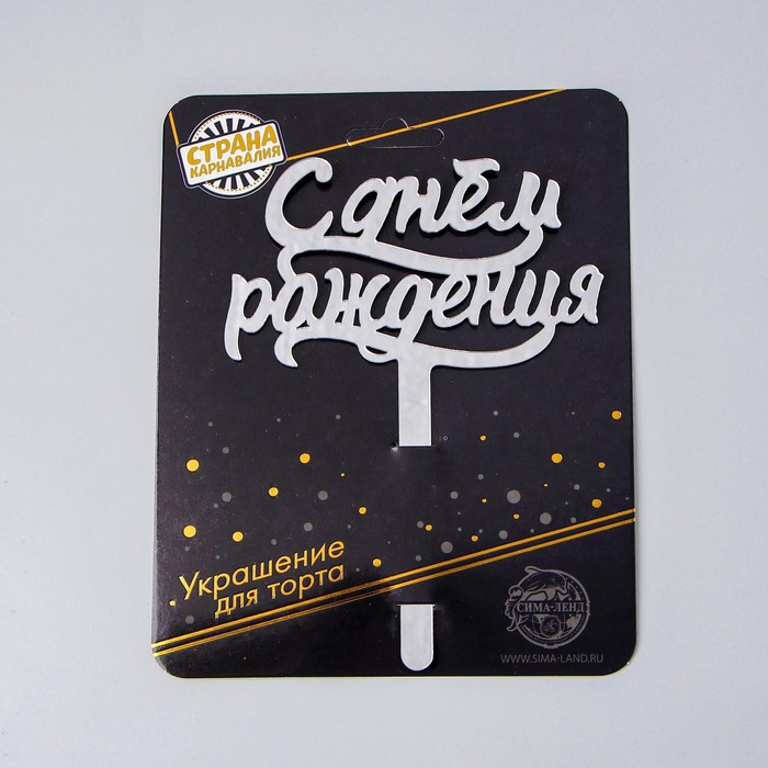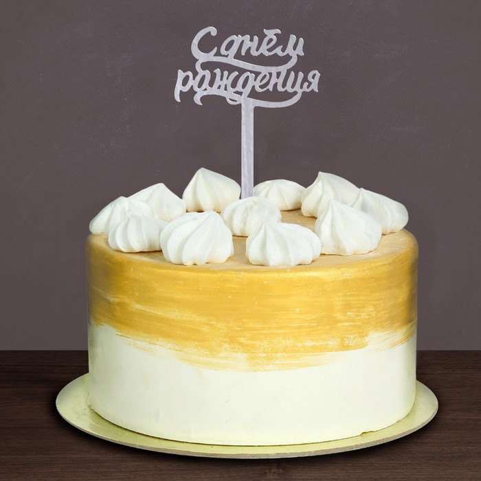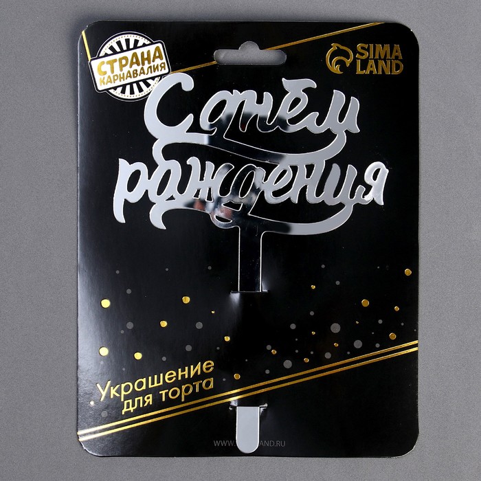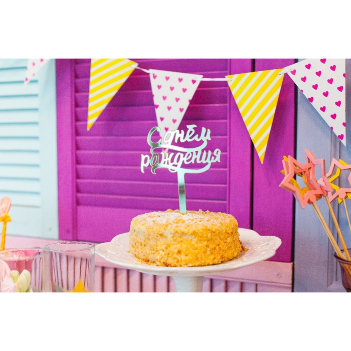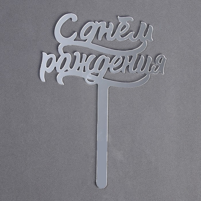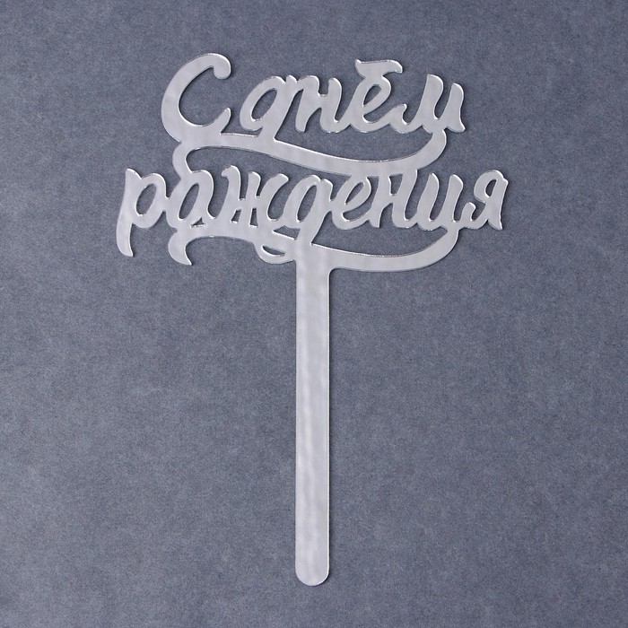 Топпер для торта «С днём рождения», акрил, серебряный — Характеристики