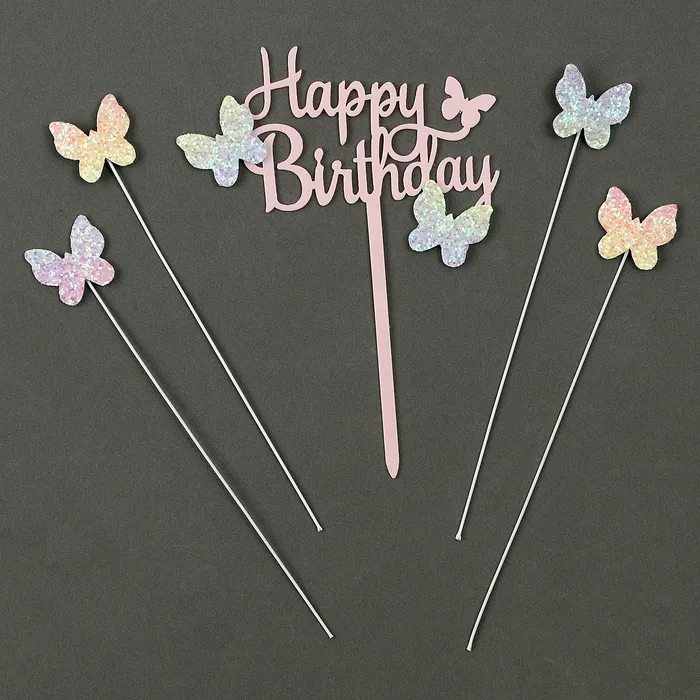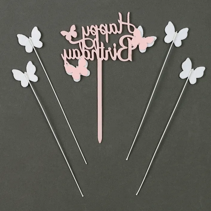 Топпер для торта «С днём рождения. Бабочки», набор 5 шт., розовый — Характеристики